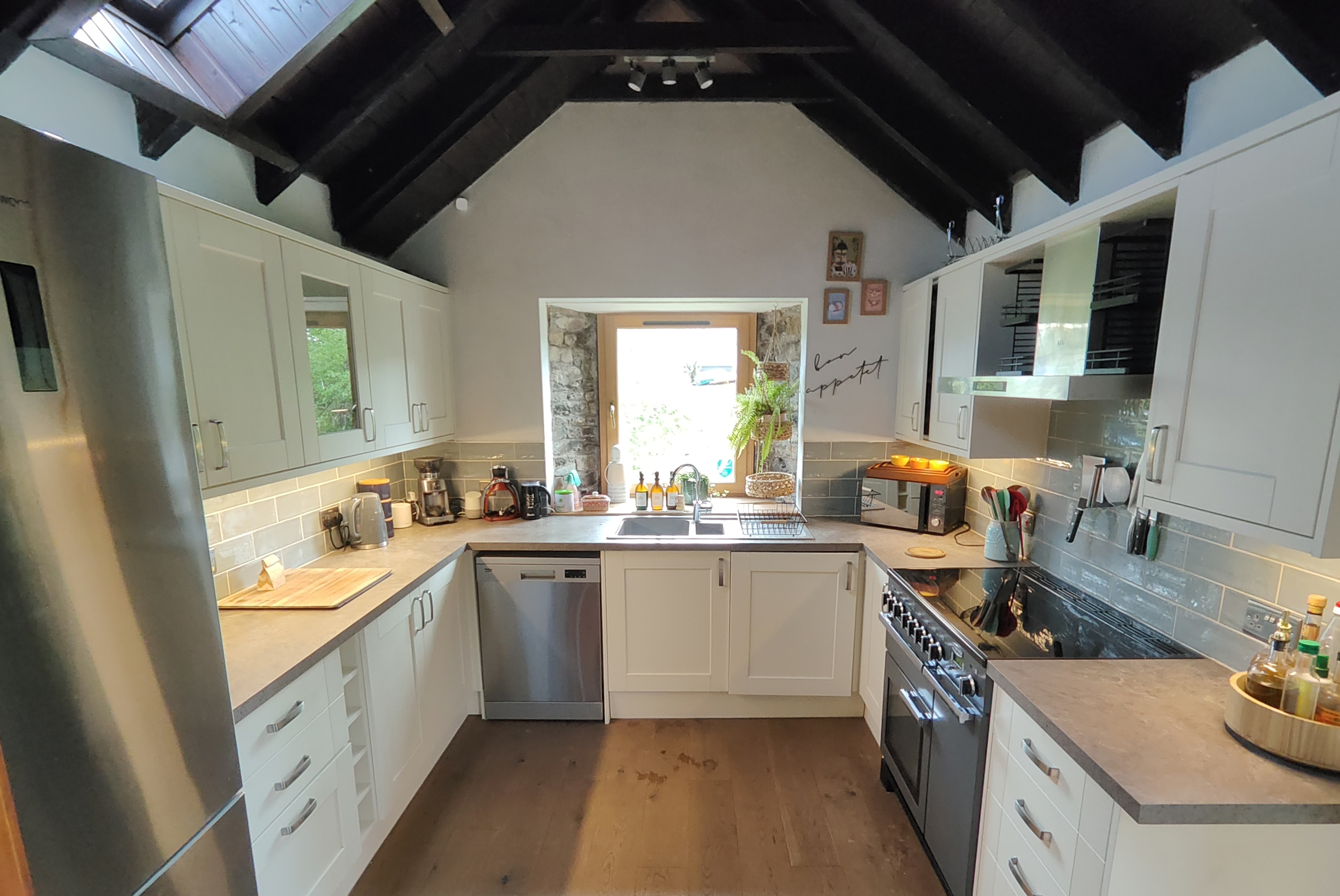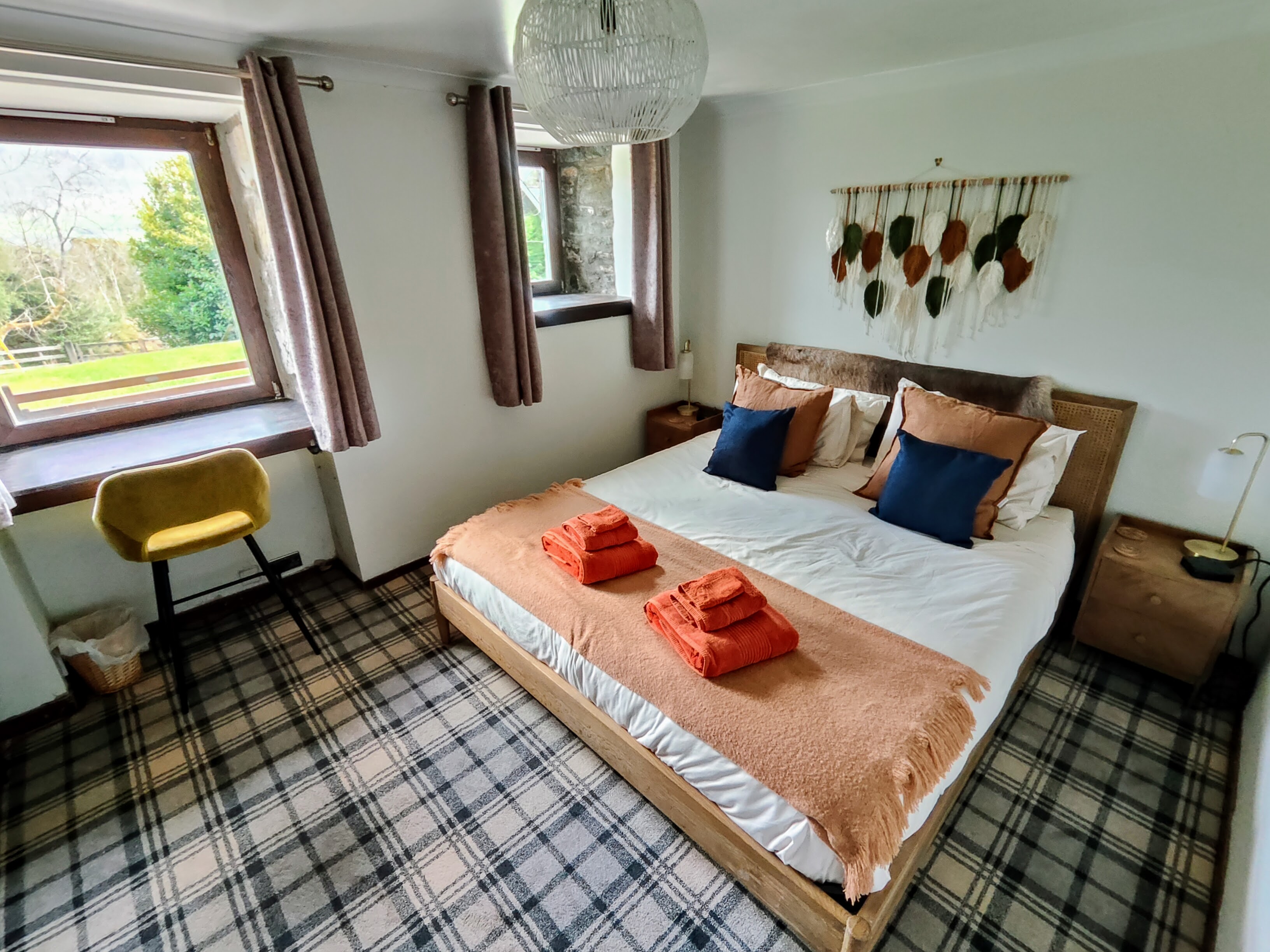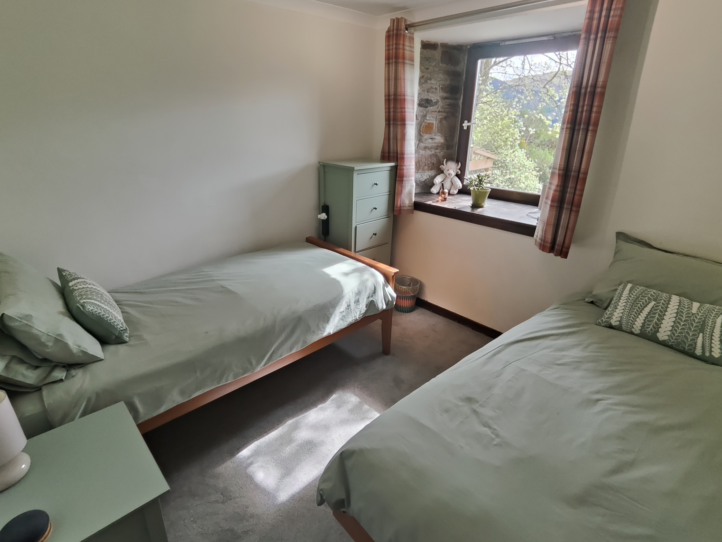 This historic building has been transformed into a modern holiday home. The upper floor has a large living/dining room with a balcony overlooking the loch, and a modern kitchen with everything you need to cook for your group. Downstairs there are four bedrooms, one shower/toilet and a separate W/C. This all opens onto a large patio and garden beside a stream that runs from Ben Lawers to Loch Tay. The garden includes an eco-friendly wood-fired hot tub, several seating areas and a fire pit.